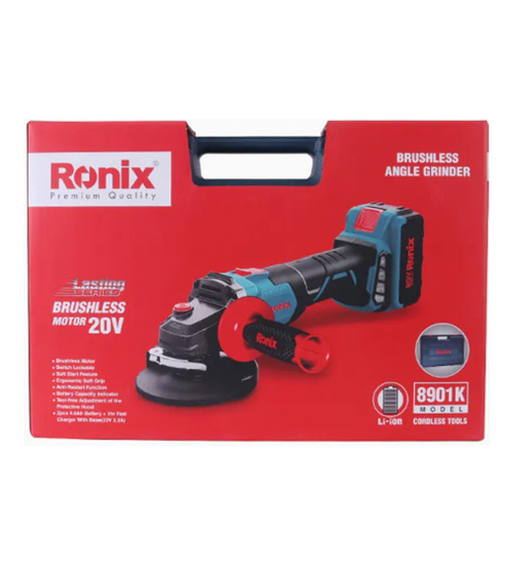Esmeril Angular Inalambrico Ronix 8901k S/carbones +2 Bat 4a