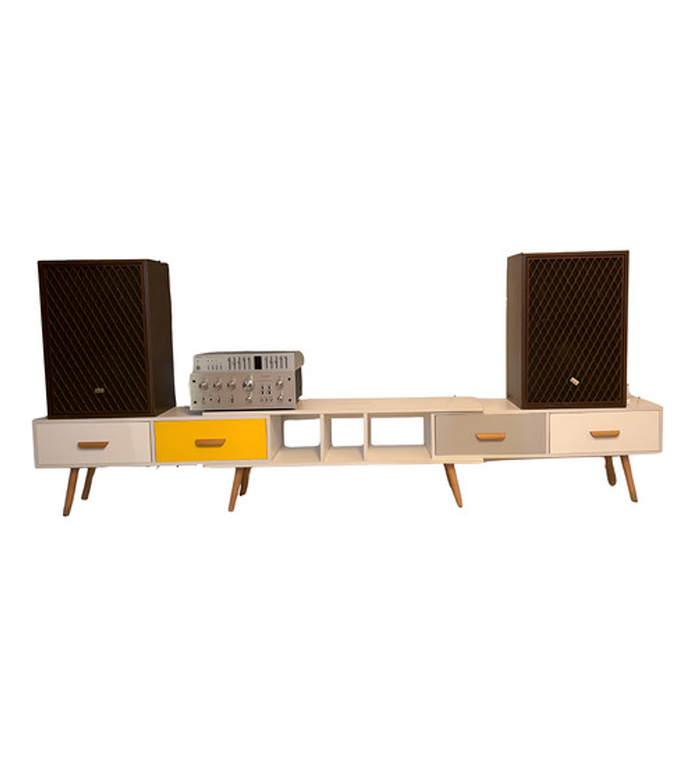 Rack Tv Blanco Cajones De Colores